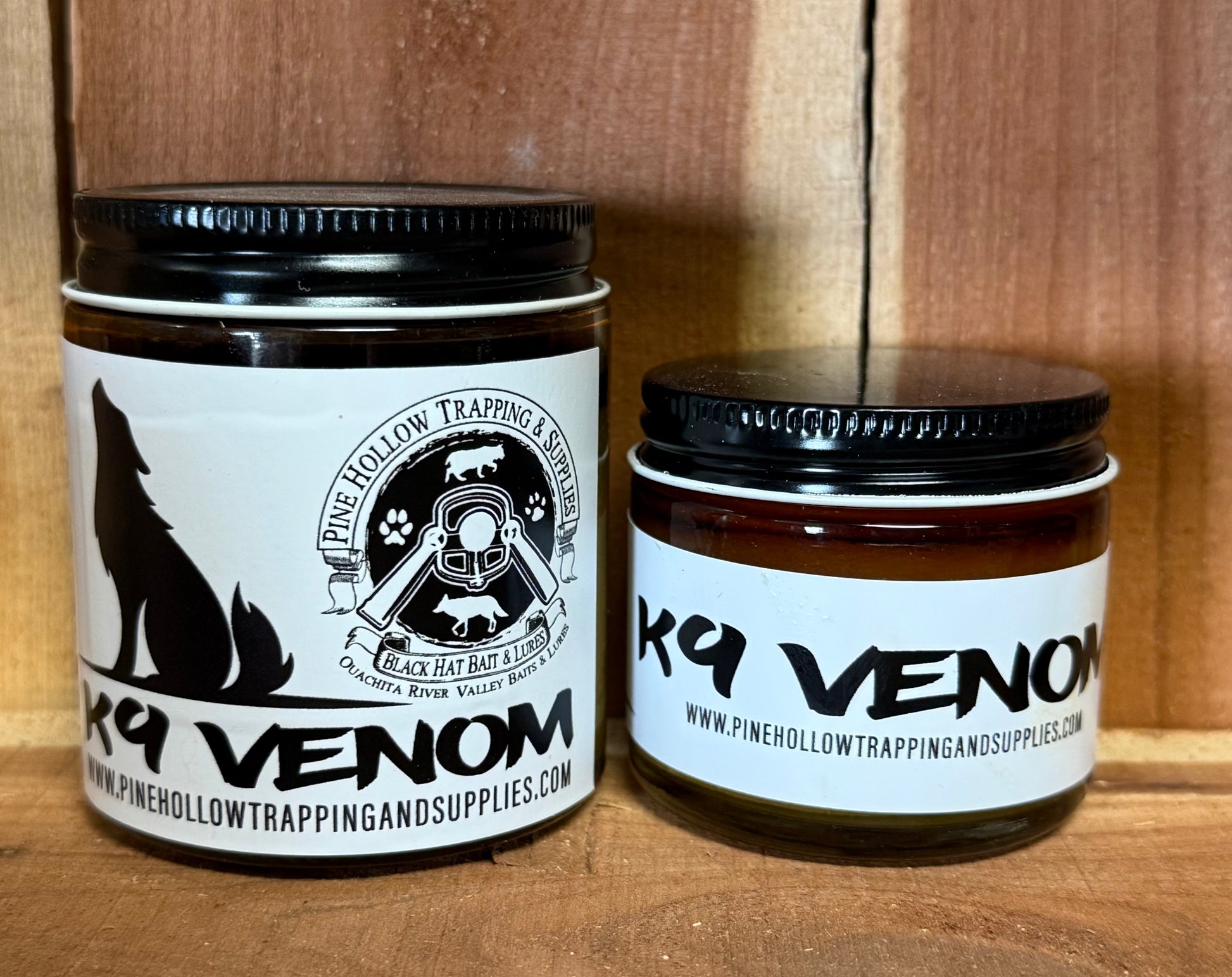K9 Venom was one of the original lures when we bought the Ouachita River Valley bait and lure business. There is an ingredient in the recipe that causes a sexual and territorial response from both male and female K9's. The response from past customers are the same, when they have caught the easy ones and can't get the old smart ones they pull out the K9 Venom on a flat set or scent post. The loud and different ingredients are some that the predators do not smell normally and the results will speak for itself!